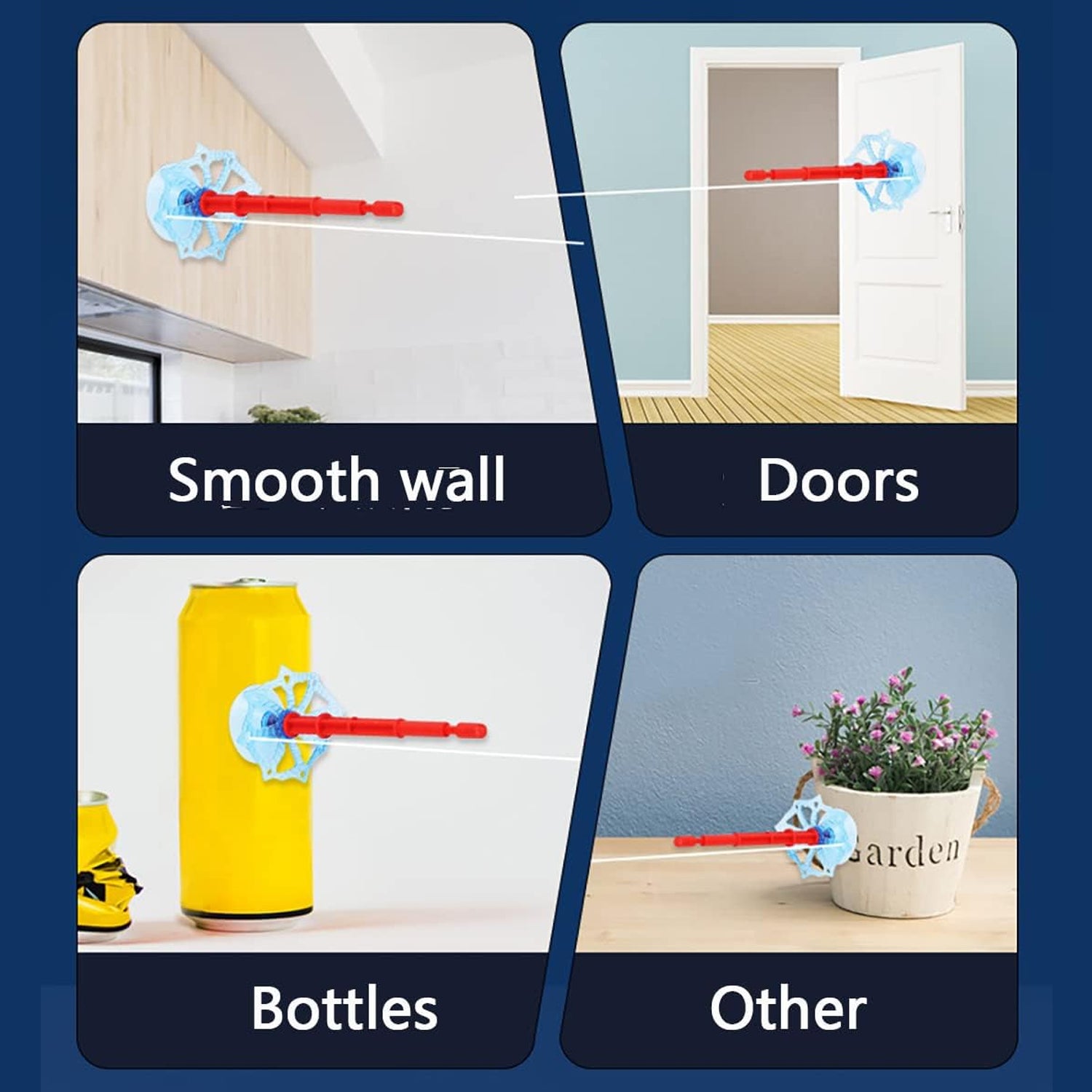 - 【Easy to Use】Open the transmitter cover, load the launcher and turn the start button on the left to start the wafer. The suction cups will stick to the ground or glass, which is a lot of fun